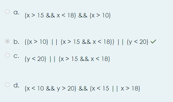 | Express- ion | A | B | A || B | A && B | !A | !B | !A || !B | !A && !B |