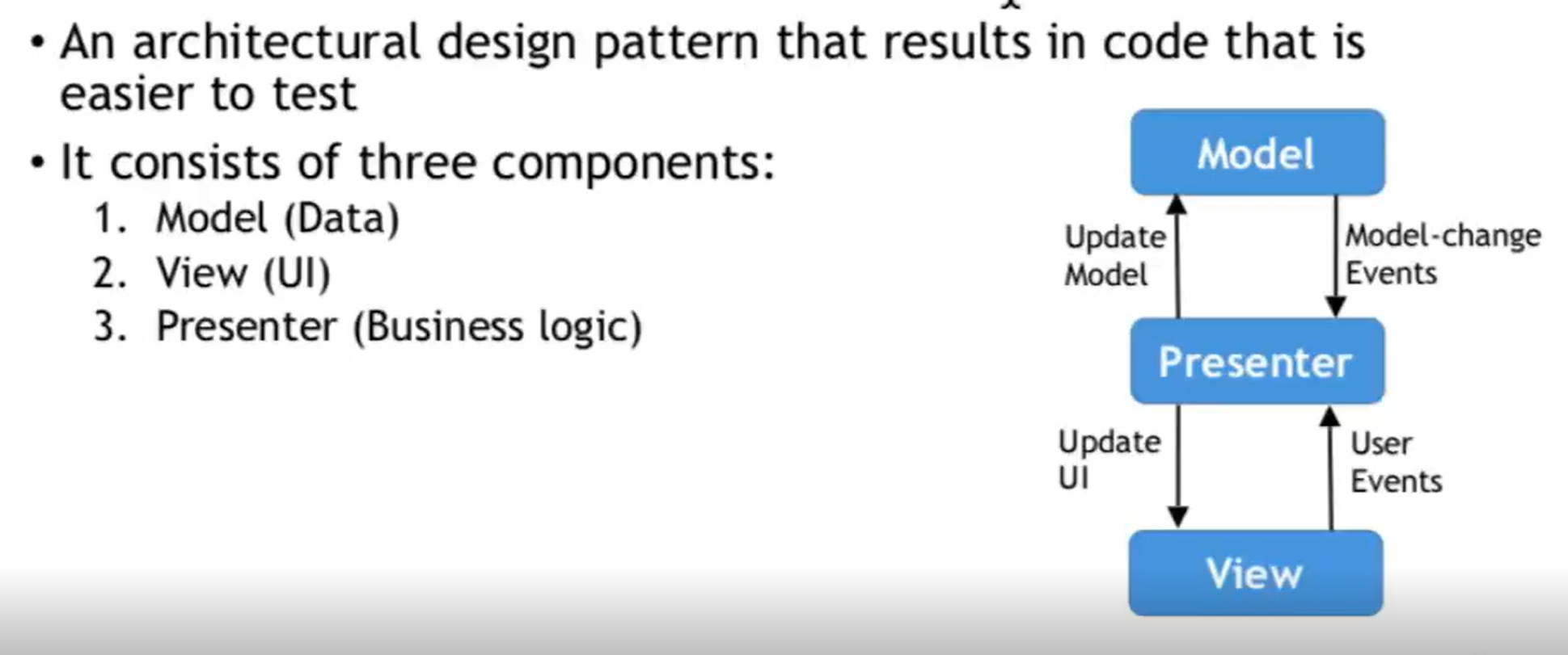 Biggest benefit of MVP is testing, especially for mobile development.