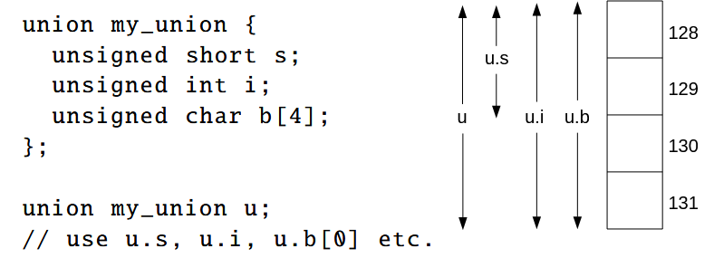 - I.e. “I want an array where everything is either an int or double”. Unions come into play there