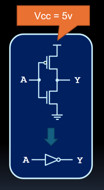 Refer to Circuits with Physical Switches for the first AND gate via physical switches. ALL digital logic gates (AND, OR, NOT, etc.) are created by a combination of nMOS and pMOS Transistors (pMOS and nMOS)!
