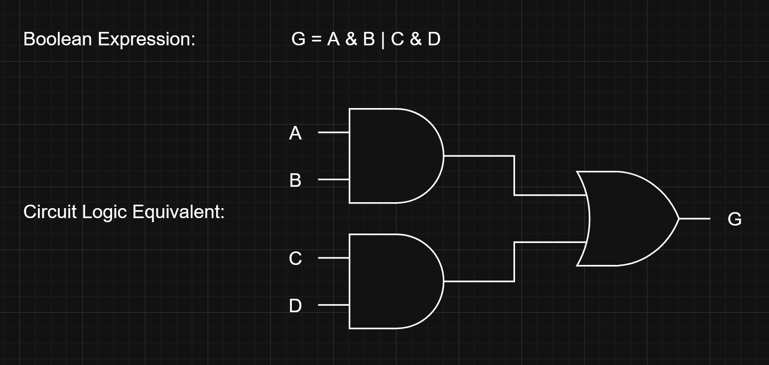 It’s useful to use “levels” based on precedence of logical operators. For instance, effectively represents like above in a different notation, yes, but it also emphasizes the levels via the brackets. Each bracket contains a level, and eventually these sub-levels become indivisible and only contain one logical operator which can be represented by a logic gate.