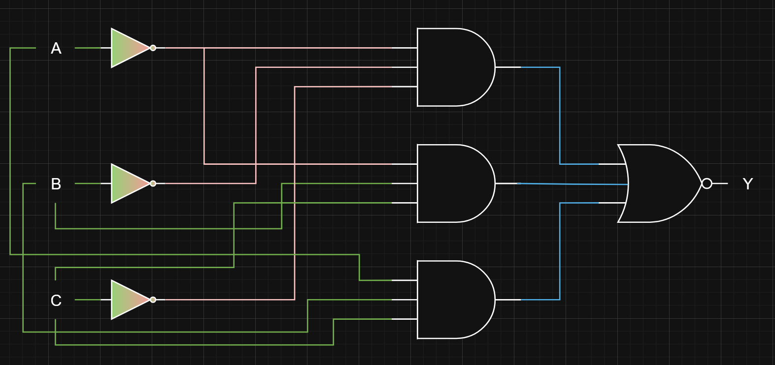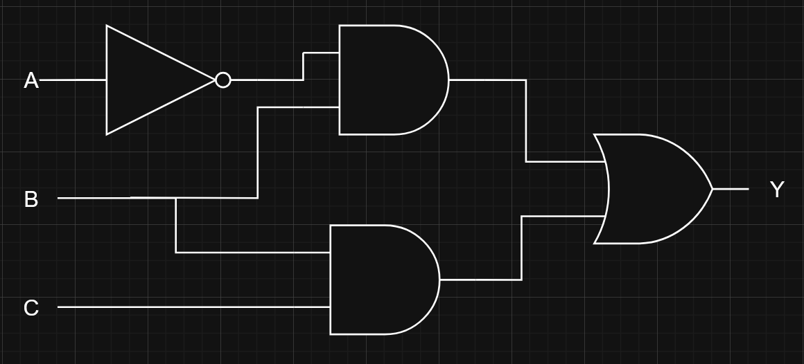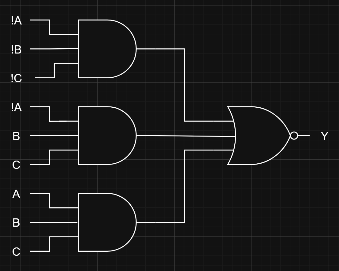 However, in logic, our inputs will always be A, B, C and never ; we use an inverter to pass in those negated variables into the gates as required.