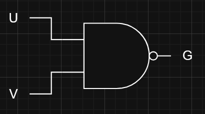 Therefore, some binary inputs U and V shoved into a NAND gate could be expressed like this: