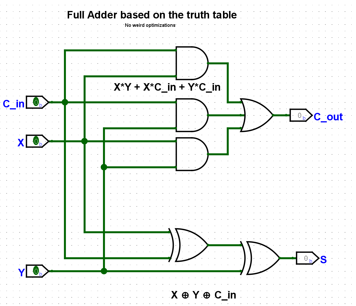 - The 3 inputs are and the 2 outputs are where X and Y are what are added, S is the sum, and C is the remainder in both scenarios
