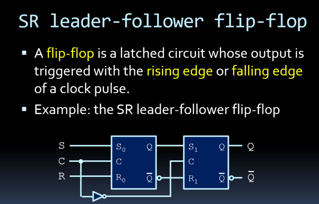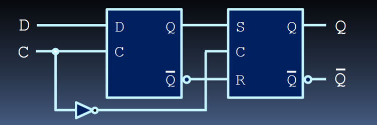 - When C=1, the first latch updates its value. When C=0, the second latch takes the first latch’s value and stores that while also outputting it.