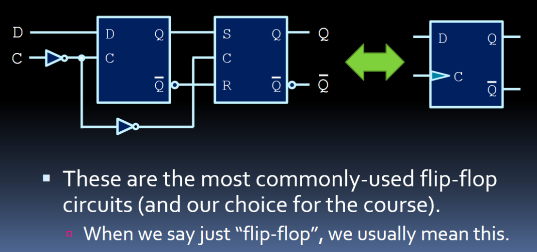 - Means its output Q changes to D on the falling-edge — when C goes from 1 to 0
