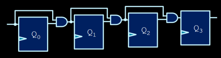 - The idea is that if Q1 and Q2 are high, then the AND gate going into Q3 will be high, and Q1 and Q2 will go to low after Q1 flips, causing Q2 to flip. #todo I still do not get this @_@