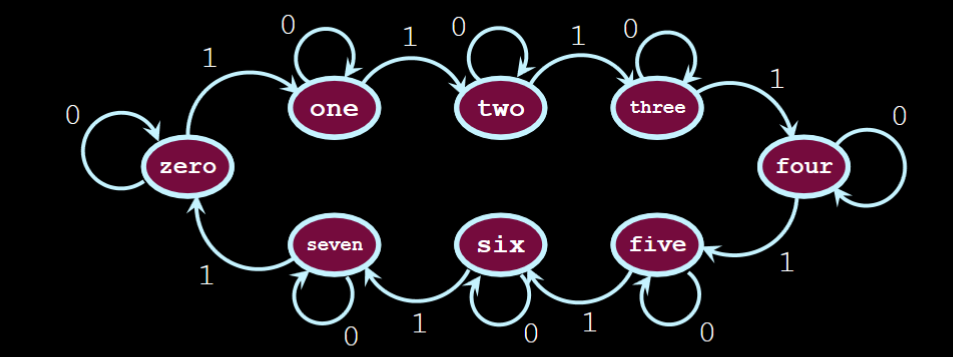 - This diagram is very predictable; if you’re at “1” and input “1”, then your output will be “2”
