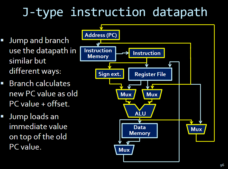 if-elseand you skip the if) if you want to store the next instruction to go to, you use the signed difference.- Cuz the immediate field is 16 bits but the address is 32 bits!