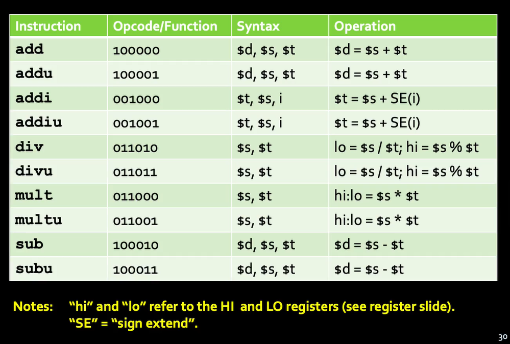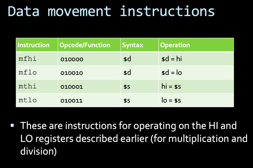 li(load 32-bit immediate) is also super important. It loads an immediate into a registerli $s0, 0x1234ABCDis equivalent tolui $s0, $s0, 0x1234ori $s0, $s0, 0xABCD