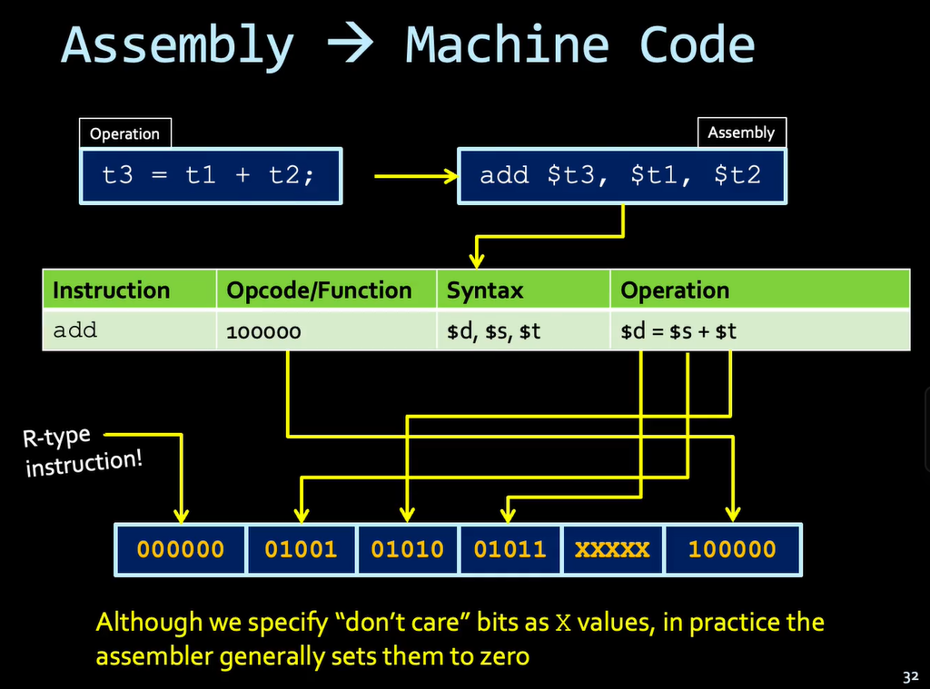 add $t3, $t1, $t2, we first figure out the opcode. It’s ar-type! - If you have the table, you’d know that it’s