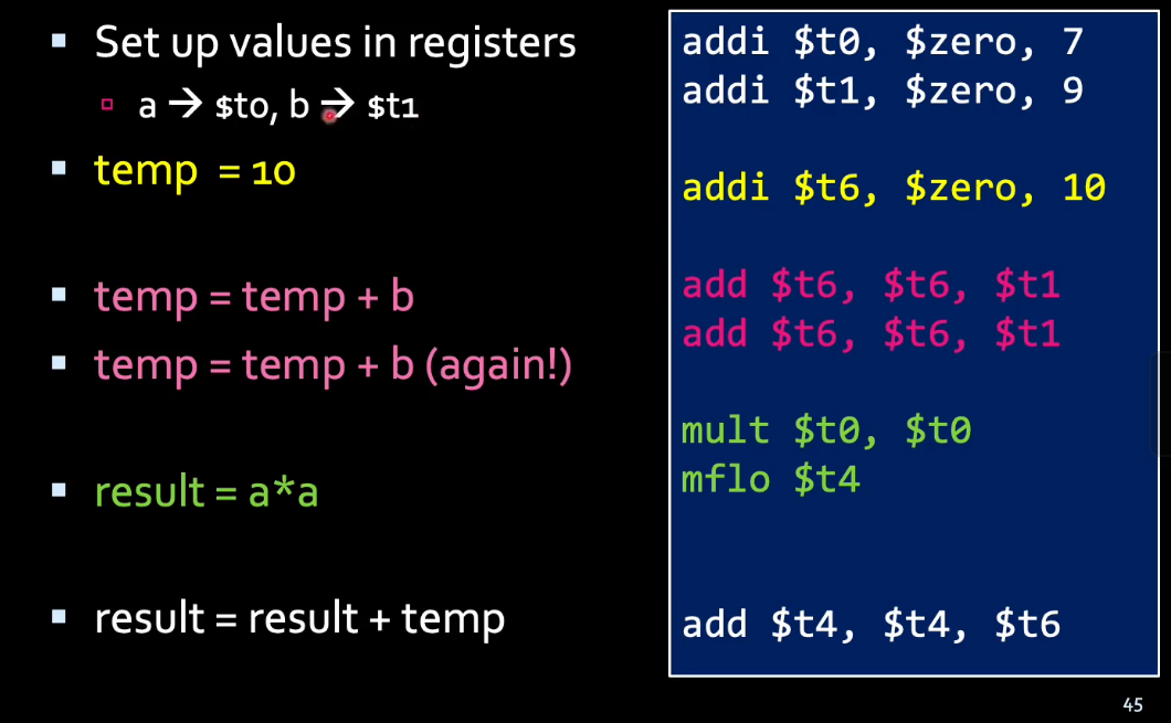 mul $s1, $t4, $t5(multiply and store into$s3is the same asmult $t4, $t5mflo $s1