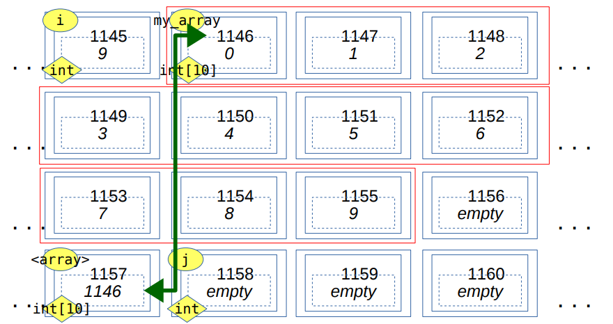 my_arrayis an array with 10 items, and inside of a function it is being passed. So, a bit of memory has to be allocated for the pointer to point to the original array.