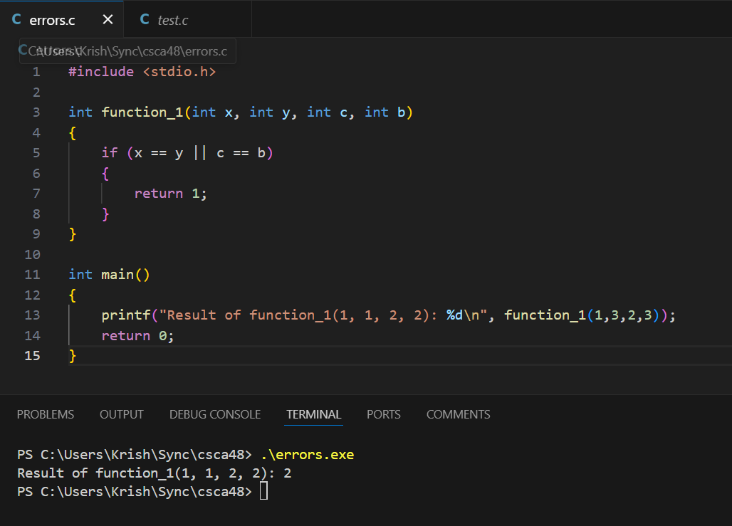 function_1 return 2 here? I know I haven’t explicitly specified what to return when the conditional fails. So, is 2 chosen because it’s some garbage number or something, or does this reoccur.